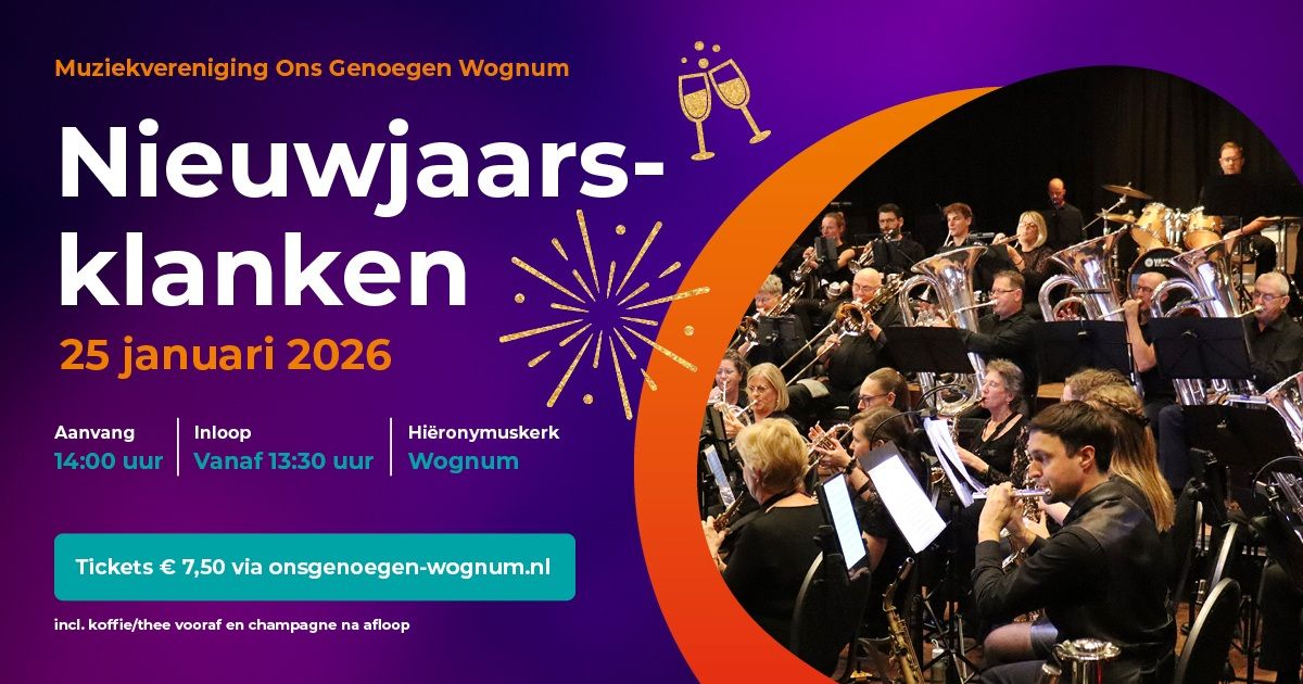 🎟️ Tickets für 7,50 € (inkl. Kaffee/Tee und Champagner) über www.onsgenoegen-wognum.nl oder an der Abendkasse.